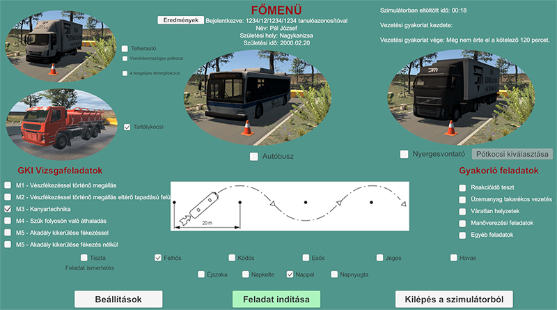 rutinfeladatok (pl.: tolatás, parkolás) gyakoroltatására
