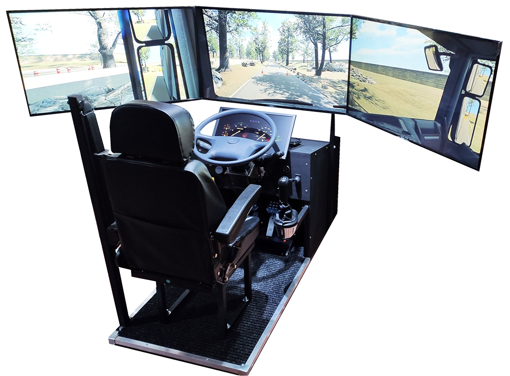 A szimulátoros vezetésen a gépkocsivezetők gyakorolják az autóbusz vagy a tehergépkocsi különböző útviszonyok közötti kezelését, valamint kialakítják és fejlesztik a változó körülményektől függő helyes vezetői stílust. Szimulátor segítségével a veszélyhelyzetek létrehozásával gyakorlattabb gépkocsivezetőkké válnak. A gyakorlat célja az alkalmasság-vizsgálat és a fejlesztés, melyet reakcióidő teszttel, valamint a gazdaságos és környezetkímélő vezetési mód gyakoroltatásával és értékelésével érünk el.